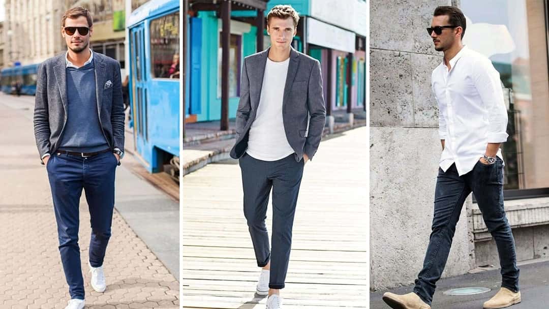 Erkekler için smart casual kombinler, işyerinde, arkadaşlarla buluşmalarda, akşam davetiyelerinde giyilmesi gereken kombinleri ifade eder. Bu kombinlerde amaç, rahat ve şık bir görünüm elde etmektir.